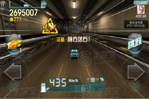 2.躲避落石:出現在第六個加油站後,如果此時你能遇到躲避落石模式,那麼恭喜你,新手進階你已經完成一半了!